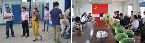 進(jìn)入盛夏,高溫炙烤,暑氣逼人,尤其是入伏以來(lái),氣溫更是居高不下,為確保施工現(xiàn)場(chǎng)安全生產(chǎn),保障一線管理人員及工人的人身安全和身體健康,7月13日至23日,公司領(lǐng)導(dǎo)班子全體成員組成八個(gè)慰問(wèn)組奔赴濟(jì)南、青島、濰坊、德州、濟(jì)寧、鄭州等多個(gè)地市的22個(gè)項(xiàng)目部,開(kāi)展了以“情系一線 夏送清涼”為主題的慰問(wèn)活動(dòng)。